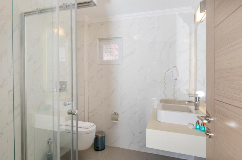 Toate unitățile au baie privată cu uscător de păr, pardoseală mochetată și fotoliu.