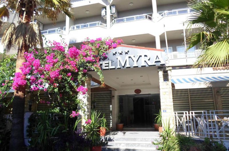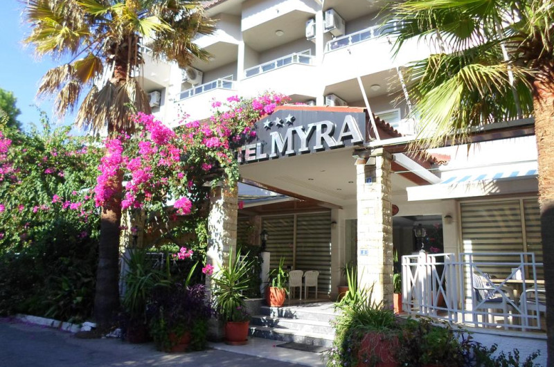Amplasată în Marmaris, la 250 m de plaja Marmaris Public, Myra Hotel este o proprietate de 3 stele care oferă o piscină în aer liber, terasă cu șezlonguri și umbrele de soare și unități de cazare cu aer condiționat. Proprietatea are recepție cu program non - stop, unde clienții sunt întâmpinați cu ospitalitate în orice moment al zilei. Se oferă acces gratuit la internet Wi-fi în spațiile publice. Parcarea este posibilă pe stradă, în imediata apropiere a proprietății.
