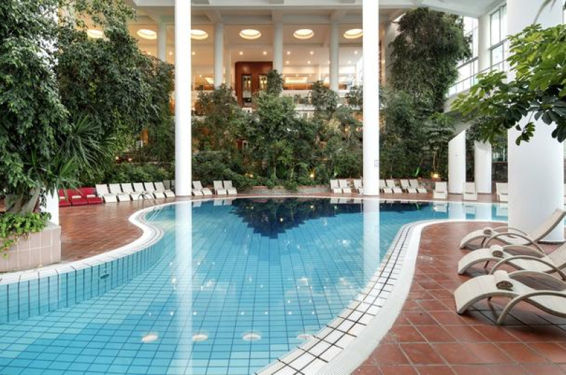 Din facilitățile oferite de proprietate nu lipsește centrul de wellnes și spa, unde oaspeții se pot relaxa la masaj, saună sau la baia cu aburi. Cada cu hidromasaj și baia turcească întregesc oferta variată de servicii pe care le propune centrul spa. În cadrul proprietatății există piscină interioară pentru lunile mai reci sau pentru zile toride, precum și 3 piscine exterioare cu tobogane cu apă, pentru cei dornici de distracție. Proprietatea are o piscină care oferă o vedere panoramică asupra întregii zone Pine Bay Holiday Resort dispune de aqua park, ceea ce oferă un plus de amuzament copiilor, dar și adulților.