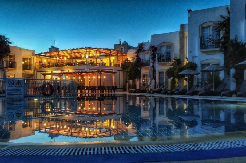 Featuring a seasonal outdoor pool and a sun terrace, Serpina Hotel offers accommodation in Gumbet, 2.7 km from Bodrum town centre. Free private parking is available on site.