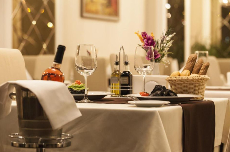Restaurantul elegant de la Regency servește preparate din bucătăria europeană, iar barul oferă cocktailuri.