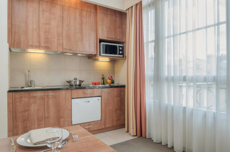 Un mic dejun continental este disponibil zilnic, la un cost suplimentar. Fiecare apartament sau studio oferă chicinetă cu frigider, cuptor cu microunde si prăjitor de paine. Puteti găsi restaurante si cafenele la mai putin de 300 de metri de proprietate.