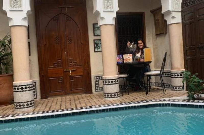 In fiecare dimineață, acest riad servește micul dejun, pe care oaspeții il pot savura pe terasă sau in curte. Pentru alte mese, oaspeții pot savura la proprietate preparate tradiționale marocane.