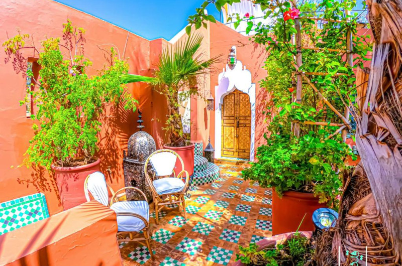 Decorated in a Moroccan style, all rooms feature a view of the patio or garden, safety deposit box and wardrobe. The private bathroom includes Tadellakt walls, a hairdryer and free toiletries.