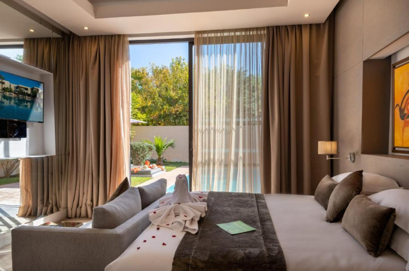 Each air-conditioned room is equipped with free Wi-Fi, a flat-screen TV with a DVD player and a private terrace or garden. A minibar is provided and some suites have a heated private pool.