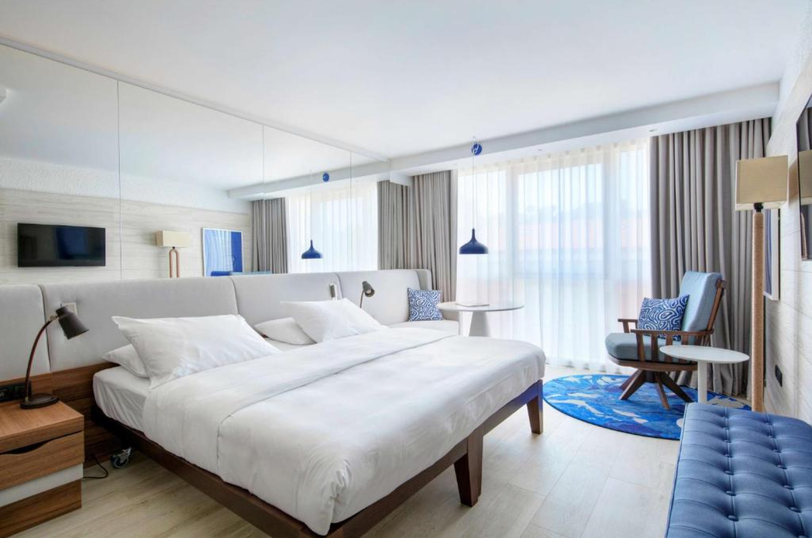 Camerele sunt decorate elegant si au aer conditionat, TV cu ecran plat cu canale prin satelit si WiFi gratuit. Unele camere au aparat de cafea Nespresso, stație de andocare pentru iPod si un balcon spațios, cu vedere la mare.