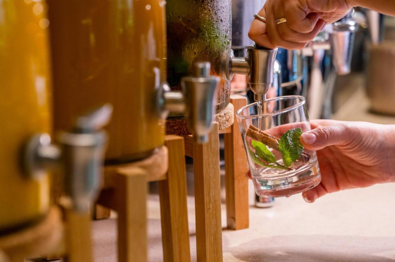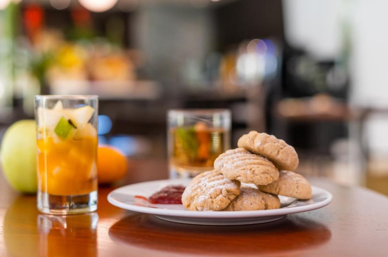 Cafeneaua servește o varietate de gustări și băuturi. Oaspeții pot savura in fiecare dimineață un mic dejun proaspăt preparat și cafea de la un aparat Nespresso.