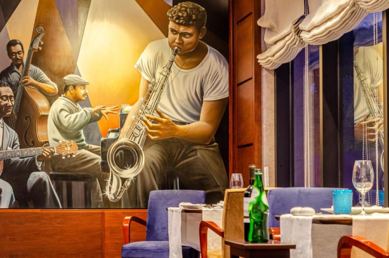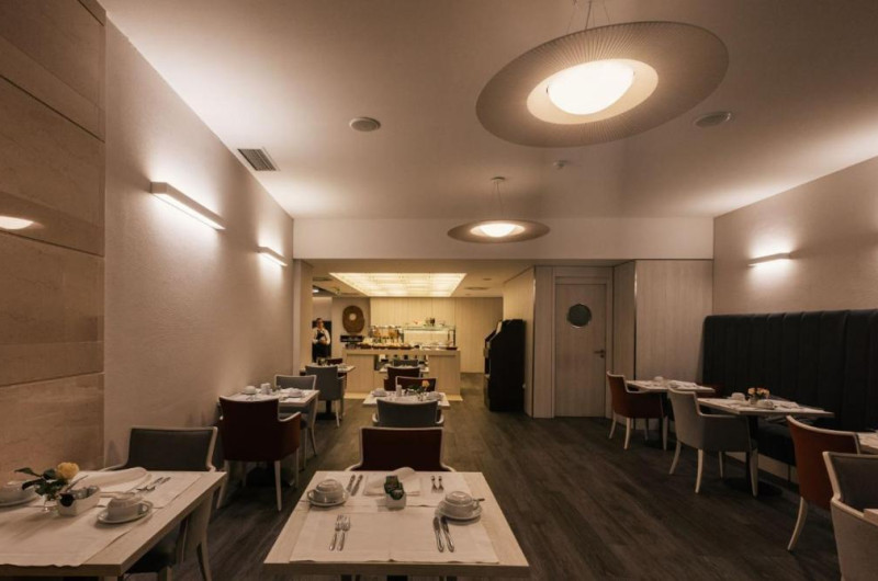 Restaurantul Blu servește o serie de mancăruri internaționale, iar oaspeții pot savura o băutură după masă la barul alăturat. Proprietatea oferă zilnic un mic dejun generos, cu chifle, fructe proaspete și preparate calde.