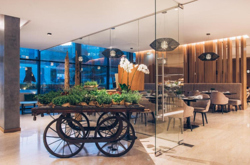 Un mic dejun continental este servit in fiecare dimineață la proprietate. Hotelul oferă o varietate delicioasă și unică de produse gastronomice pe care oaspeții le pot incerca in Restaurantul Luz și in Barul Boalma.
