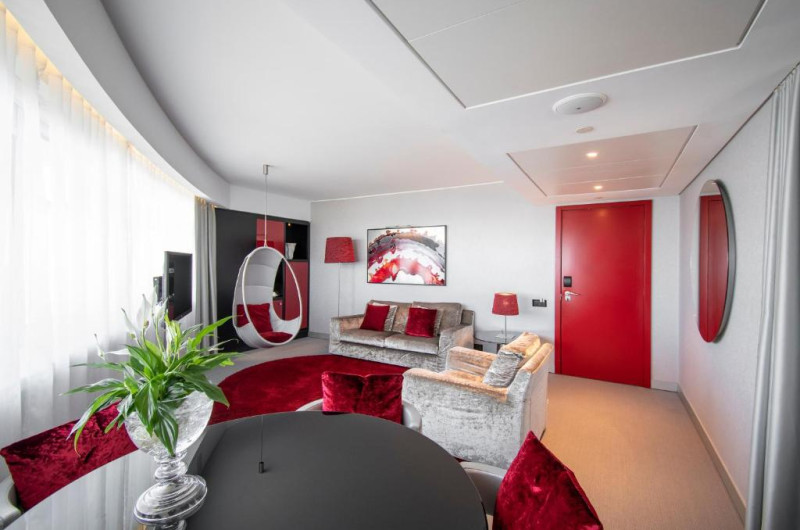 La mezaninul hotelului cele 3 săli de intalnire LEÓNIDAS flexibile cu lumină naturală pentru evenimente și ședințe de consiliu, dintre care una aproape suspendată peste rau cu vedere de 180 de grade, și 1 de neratat Centru de congrese și evenimente - MYRIAD CRISTAL CENTER, cu 2 etaje. și o zonă de punte in aer liber – conectată printr-un pod de sticlă aerian la Hotel.