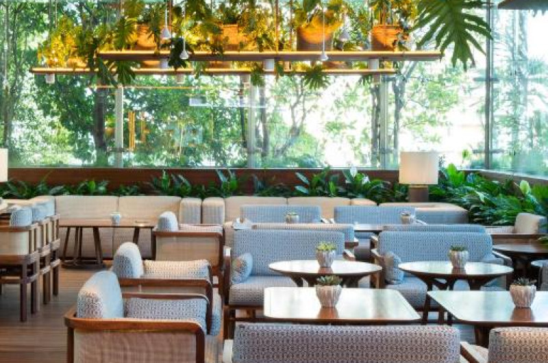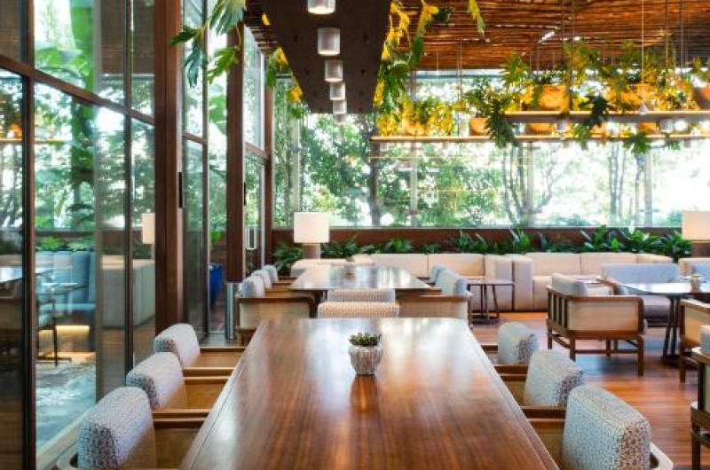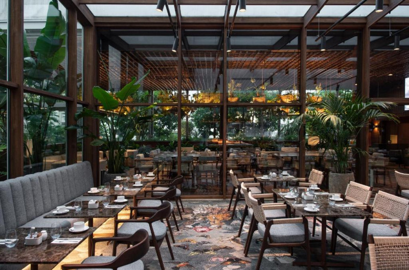 Noul restaurant Mediterraneo, cu o atmosferă tropical-colonială și iluminat natural, servește un mic dejun tip bufet, pranzul și cina incantătoare. O experiență de luat masa in cameră este, de asemenea, disponibilă nonstop. Uimitorul bar la modă și terasa acoperită cu o grădină naturală suspendată este spațiul ideal pentru lucru sau pur și simplu pentru relaxare, profitand de meniul de gustări, cu cocktail-uri clasice și la modă.