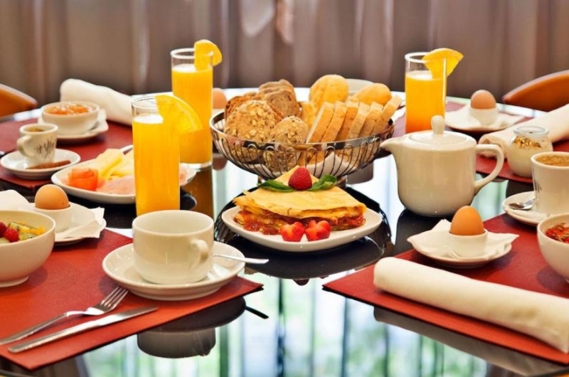 La etajul 1, oaspeții pot găsi sala de mic dejun, unde sunt servite produse proaspete, naturale și locale sub formă de bufet. De asemenea, Hotelul SANA Reno oferă oaspeților posibilitatea de a comanda in cameră.