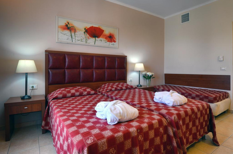 Sunt disponibile 156 camere. În camere există baie cu cadă sau duș ce are în dotare foehn și articole de toaletă gratuite. Camerele confortabile de la Ariti Grand Hotel sunt dotate cu pardoseală de gresie/ marmură, aer condiționat, Tv și seif. Unele camere au balcon cu vedere la grădină sau la piscină. Fiecare cameră dispune de cană pentru prepararea apei calde. Oaspeții pot solicita serviciul de room service pentru a servi masa sau diverse băuturi. Oaspeții au acces gratuit la serviciul Wi-fi în camere. Curățenia in cameră se face zilnic. Fiecare unitate de cazare are frigider. Proprietatea oferă camere pentru familie cu o suprafață mai mare și un număr mai mare de paturi față de cele standard. Se pot rezerva de asemenea camere pentru nefumători.