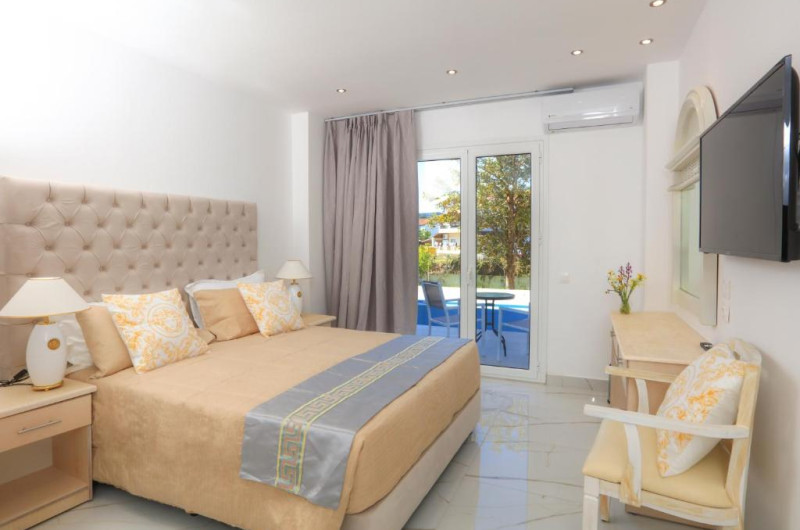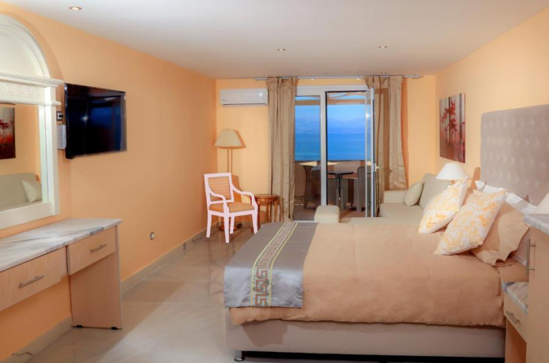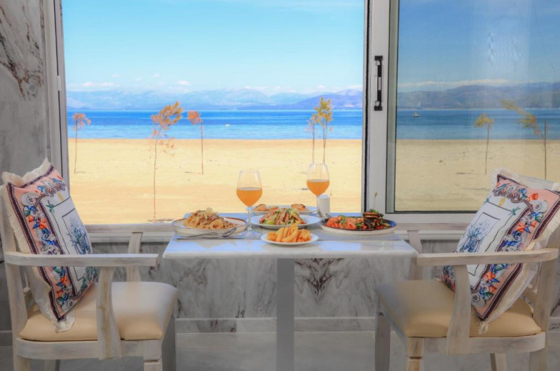 Hotelul la plajă este situat chiar pe malul mării, într-un cartier animat, direct în centrul localității Kavos. Aici există mai multe posibilități de petrecere a timpului liber sau de inițiere a unor mici tururi de explorare. Până la aeroportul Corfu - Kerkyra (CFU) sunt aproximativ 40 de km.