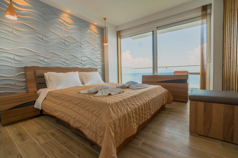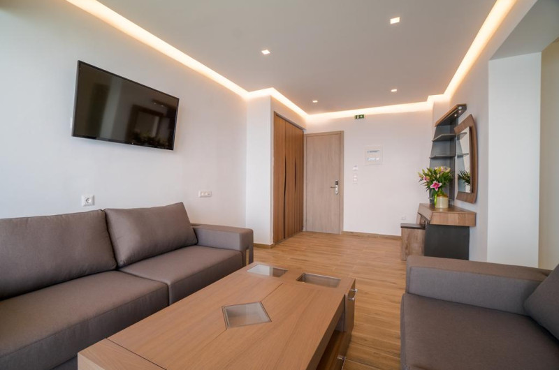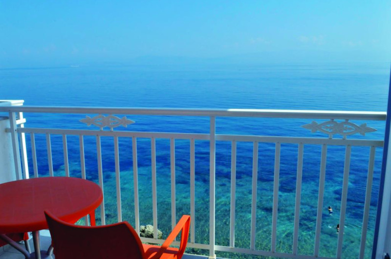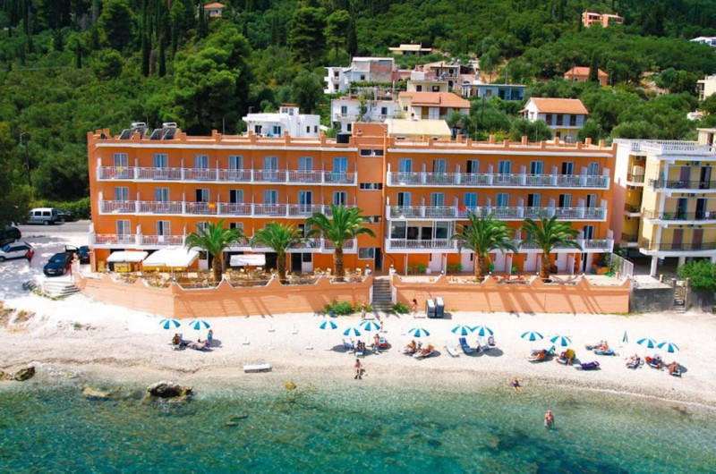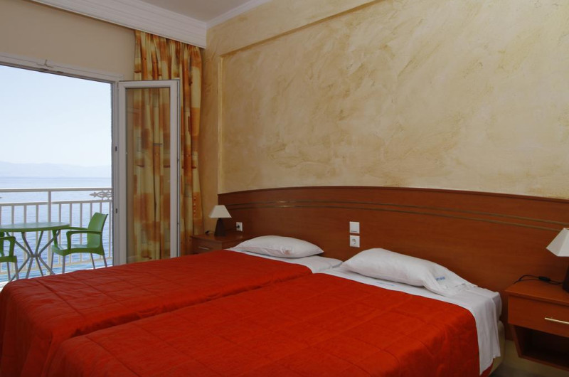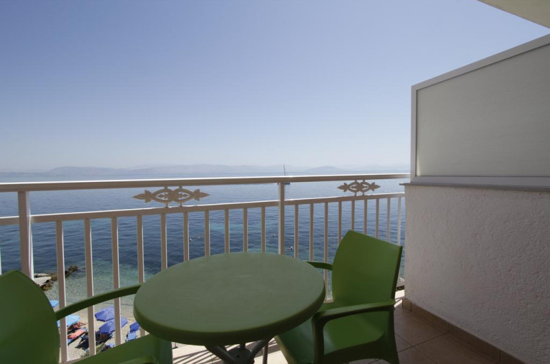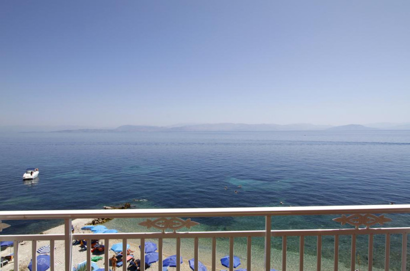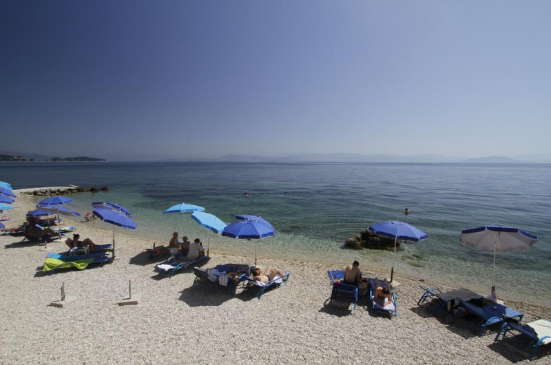 Corfu Maris are acces imediat la o plajă publică. Pe plajă există șezlonguri și umbrele de plajă.