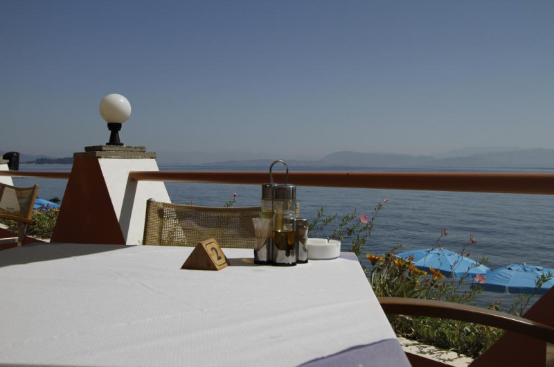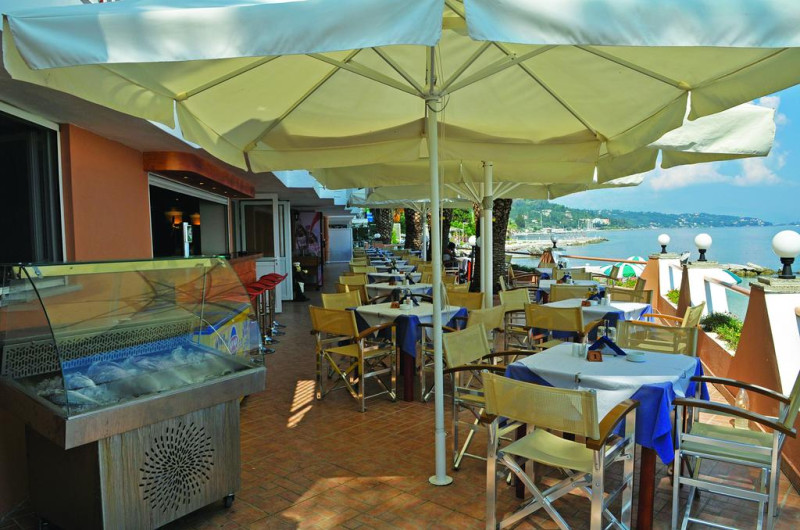 La Corfu Maris oaspeții au la dispoziție un restaurant care servește mâncare în stil bufet și à la carte. Preparate din bucătăria grecească așteaptă să fie degustate în fiecare zi. Masa poate fi servită atât în interior, cît si în aer liber, pe terasă, în funcție de vreme. Oaspeţii pot avea diverse băuturi răcoritoare sau alcoolice la bar. În cadrul proprietății există și un snack bar care servește băuturi și gustări.