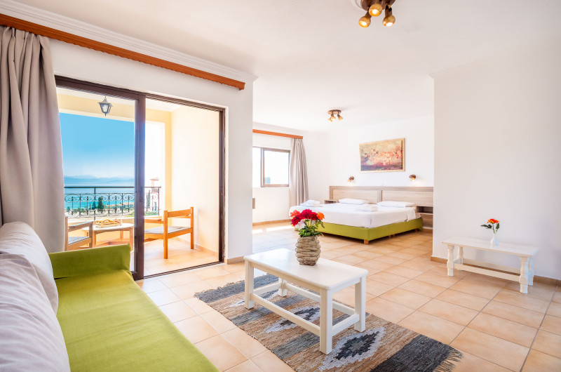 Un aparat de aer condiționat și un sistem de încălzire creează o atmosferă plăcută în camere. În majoritatea spațiilor de cazare clienții beneficiază de vedere spre mare de pe balcon sau de pe terasă. Camerele dispun de un pat dublu și de o canapea. Opțional pot fi rezervate dormitoare separate. Pot fi solicitate paturi suplimentare. Contra cost, clienții pot să-și depoziteze lucrurile de valoare într-un seif. De asemenea, o chicinetă cu un frigider și un aparat pentru cafea/ceai sunt disponibile în mod standard. Telefonul, televizorul și WiFi-ul (gratuit) oferă un concediu confortabil. Băile sunt dotate cu un duș, o cadă și o cadă cu hidromasaj. O altă facilitate oferită este un uscător de păr.