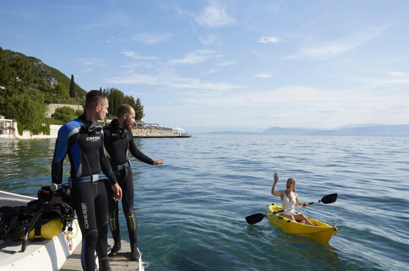 Activitățile sportive sunt o altă opțiune de petrecere a timpului liber. O sală de fitness cu echipamente necesare pentru o gamă variată de exerciții fizice este la dispoziția celor interesați. În imediata apropiere se pot practica sporturi nautice, precum windsurfing, caiac sau schi nautic. Marbella Corfu este o alegere excelentă pentru călătorii interesați de natură. Împrejurimile oferă posibilitatea organizării de tururi de mers pe jos sau cu bicicleta. Marbella Corfu oferă serviciul de închirieri biciclete contra cost.