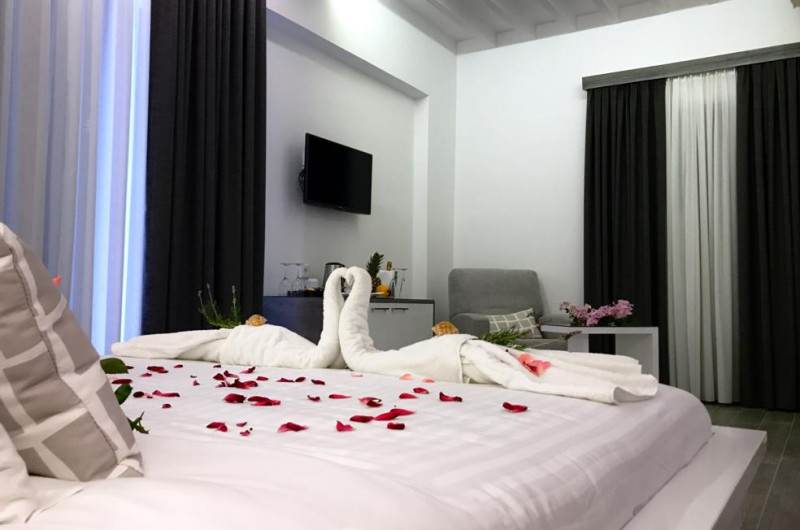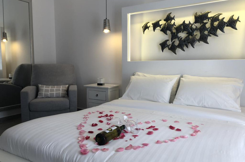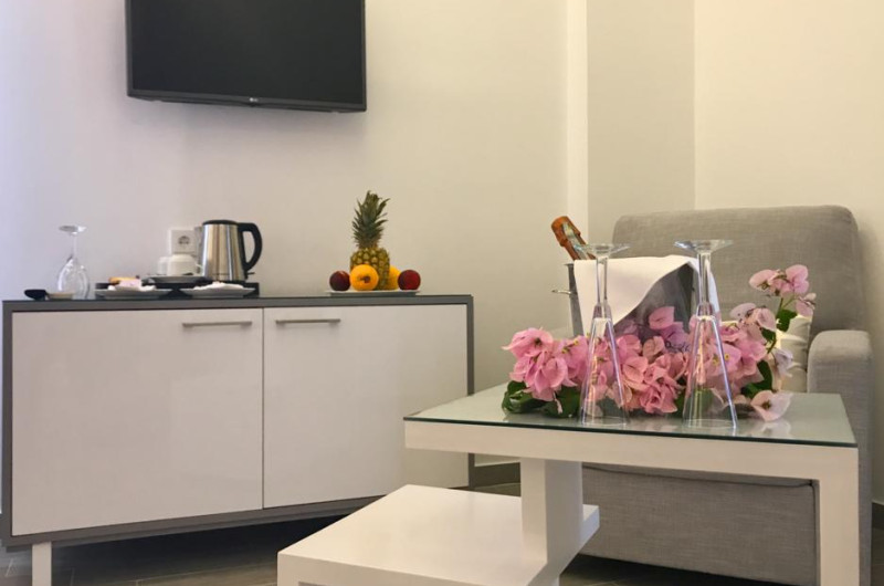 Camerele luminoase de la Ionian Suites By Bruskos sunt dotate cu aer condiționat, Tv și seif. Oaspeții au la dispoziție serviciul de room service pentru a servi masa sau diverse băuturi. Oaspeții au acces gratuit la serviciul Wi-fi în camere. În camere există baie cu duș ce are în dotare foehn și articole de toaletă gratuite. Camerele au balcon cu vedere la piscină sau la grădină. Curățenia in cameră se face zilnic. Proprietatea oferă camere pentru familie cu o suprafață mai mare și un număr mai mare de paturi față de cele standard.