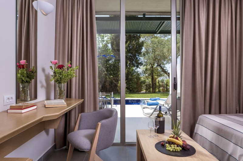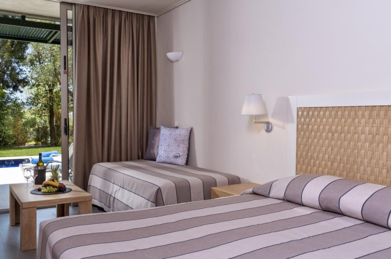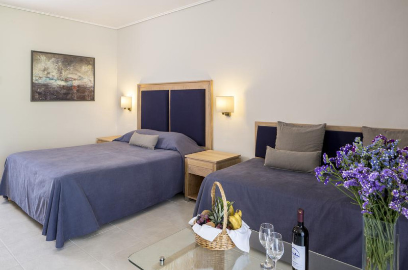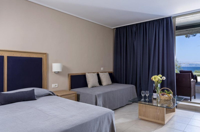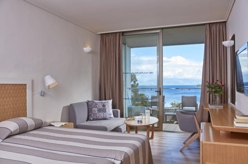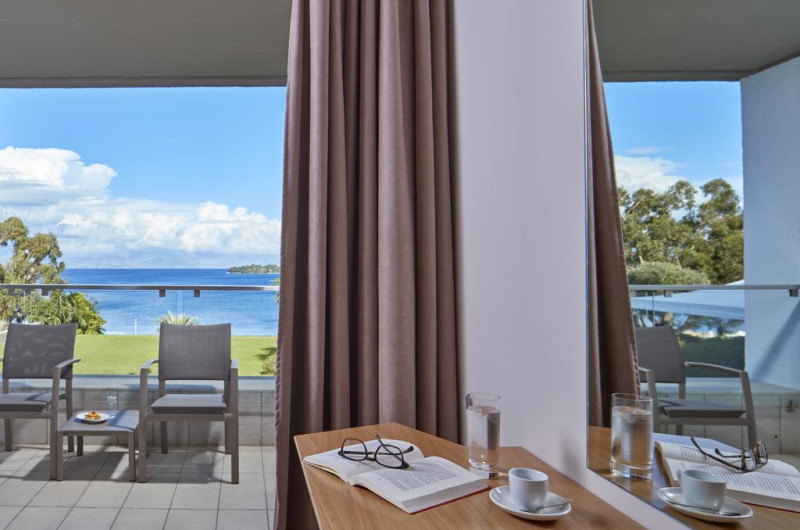 Unele camere au balcon cu vedere la mare sau la grădină. Camerele luminoase de la Kontokali Bay Resort & Spa sunt dotate cu gresie sau parchet, aer condiționat, Tv și seif. În camere există baie cu cadă sau duș ce are în dotare foehn și articole de toaletă gratuite. Fiecare cameră dispune de un aparat pentru preparare cafea sau ceai, cană-fierbător și minibar. Oaspeții pot solicita serviciul de room service pentru a servi masa sau diverse băuturi. Oaspeții au acces gratuit la serviciul Wi-fi în camere. Curățenia in cameră se face zilnic. Toate camerele spațioase de la Kontokali Bay Resort & Spa au zonă de relaxare cu canapea, ceea ce oferă un plus de confort. Proprietatea oferă camere pentru familie cu o suprafață mai mare și un număr mai mare de paturi față de cele standard. Se pot rezerva de asemenea camere pentru nefumători.