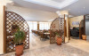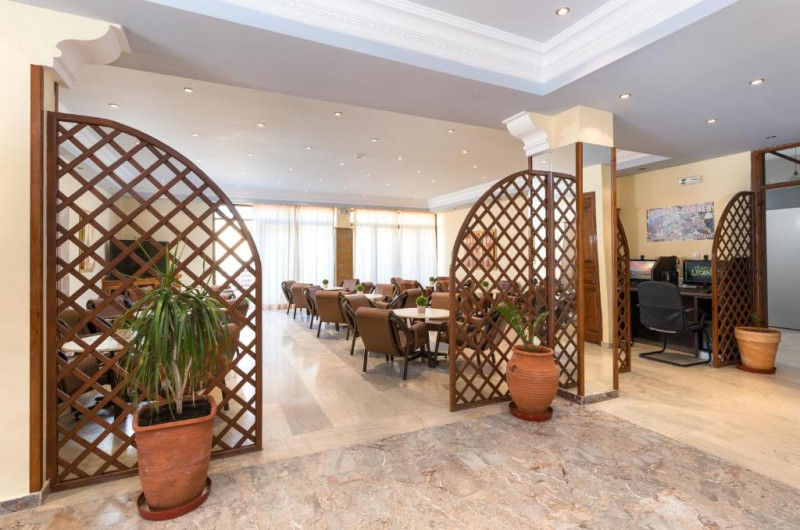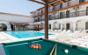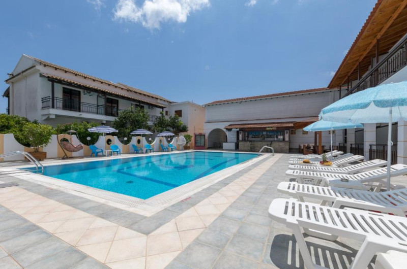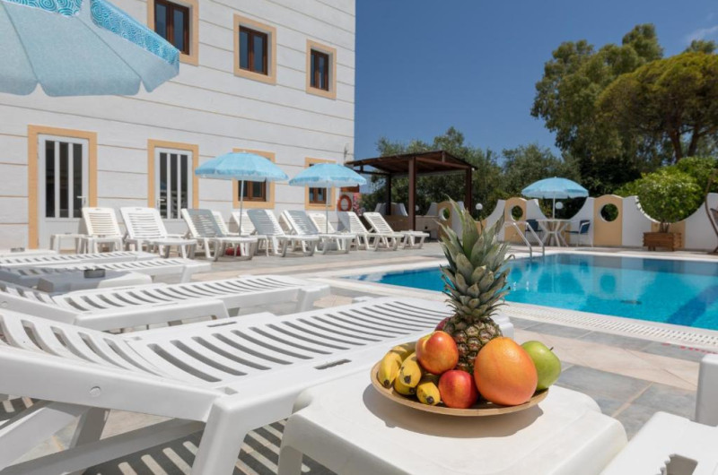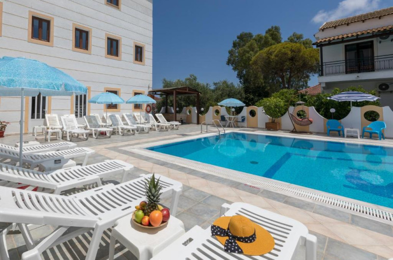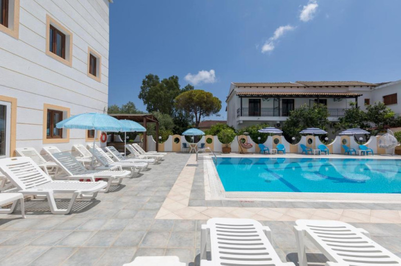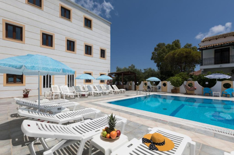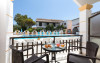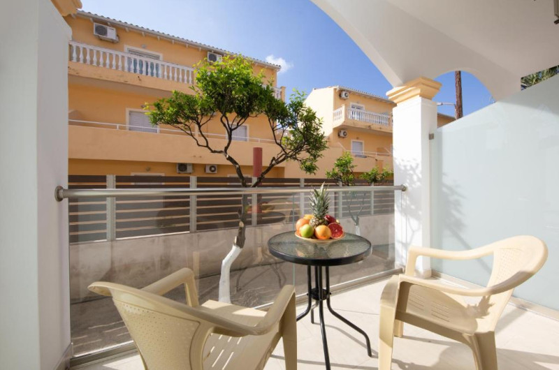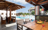 Oaspeții se pot relaxa pe terasa de la Lefkimi Hotel.
