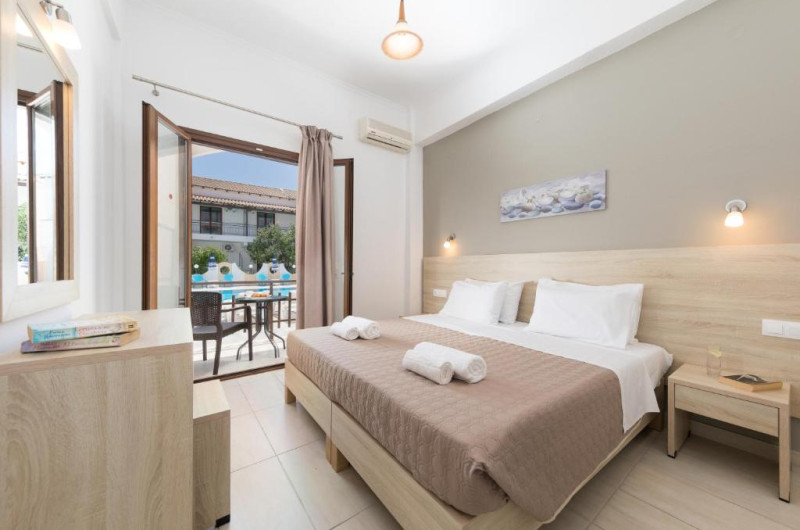 În camere există baie cu duș prevăzută cu foehn. Unele camere au balcon, cu vedere la grădină, unde oaspeții se pot relaxa în compania celor dragi. Camerele confortabile de la Lefkimi Hotel sunt dotate cu pardoseală de gresie/ marmură, aer condiționat și seif. Curățenia in cameră se face zilnic.