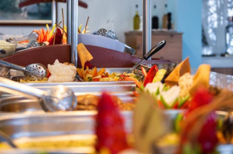 Micul dejun tip bufet este inclus in tariful camerei, iar vara, acesta este servit pe terasă. Restaurantul este deschis in timpul zilei și servește o selecție bună de mancăruri mediteraneene, inclusiv numeroase specialități locale.