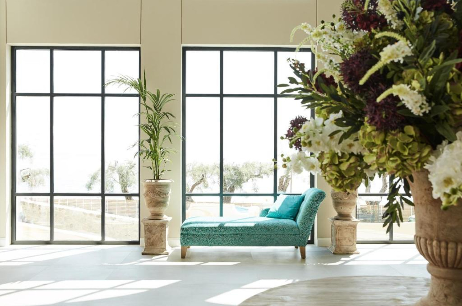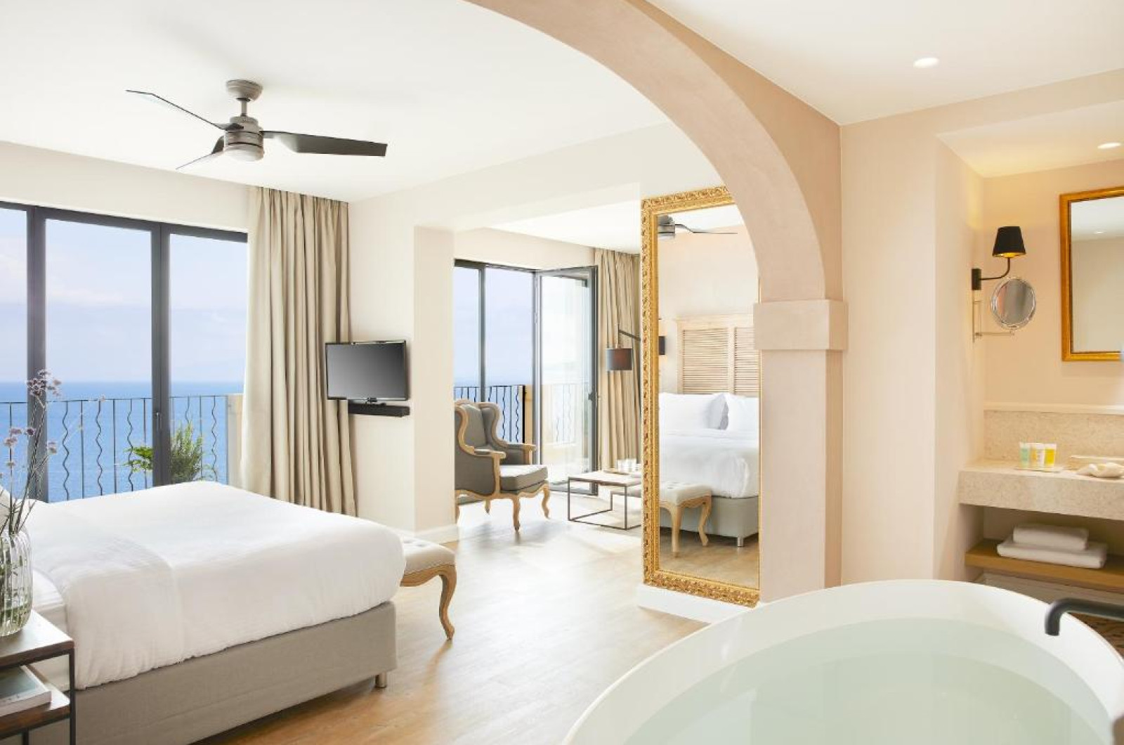 Camerele și suitele, decorate in tonuri naturale specifice arhitecturii cicladice, imbină eleganta cu confortul modern. Piscina infinity cu șezlonguri și baldachine private creează cadrul perfect pentru momente de relaxare sub soarele grecesc.