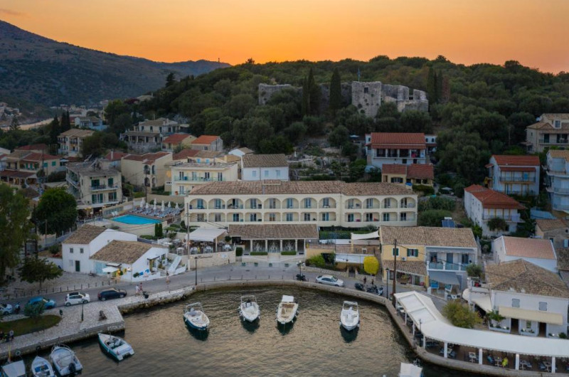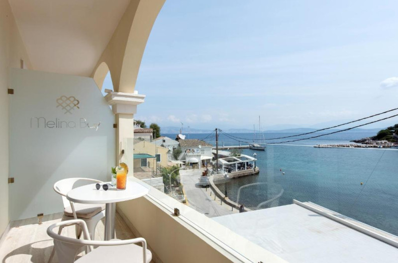 Situat sub castelul din Kassiopi și la o plimbare de doar 5 minute de plajă, Melina Bay oferă un restaurant care servește mancăruri grecești și mediteraneene și un snack bar. Aceasta are camere cu aer condiționat, internet Wi-Fi gratuit și balcon cu vedere la Marea Ionică sau la grădină.