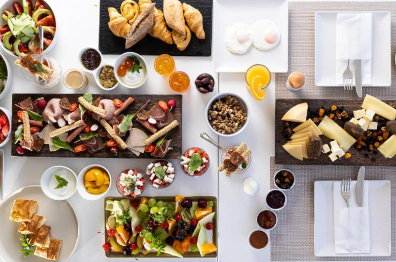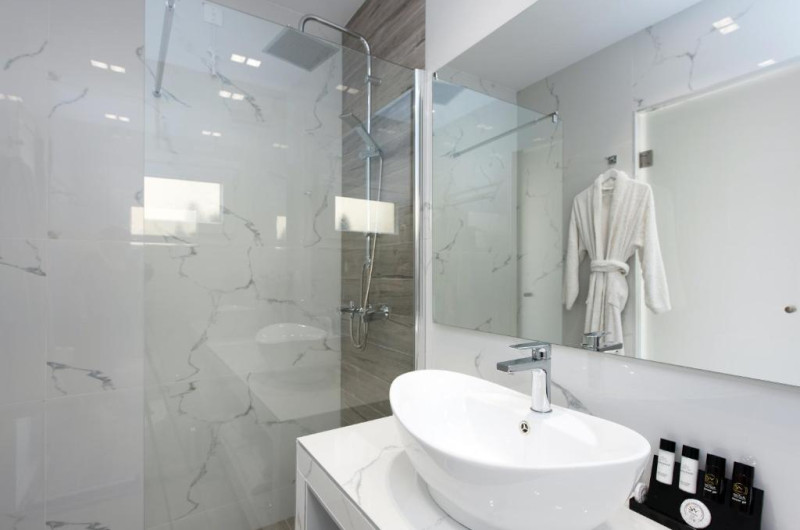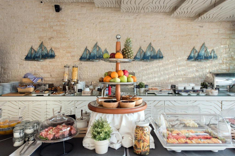 Toate camerele de la Melina Bay au decor contemporan, in culori pastelate, fiind echipate cu TV prin satelit, iPod dock și frigider. Fiecare include zonă de luat masa și fierbător electric. Baia privată include duș și uscător de păr.