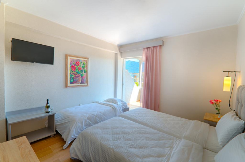 Camerele de la Livadi Nafsika Hotel au în dotare aer condiționat și Tv. Camerele au balcon cu vedere la grădină. În camere există baie cu cadă sau duș prevăzută cu foehn. Curățenia in cameră se face zilnic.