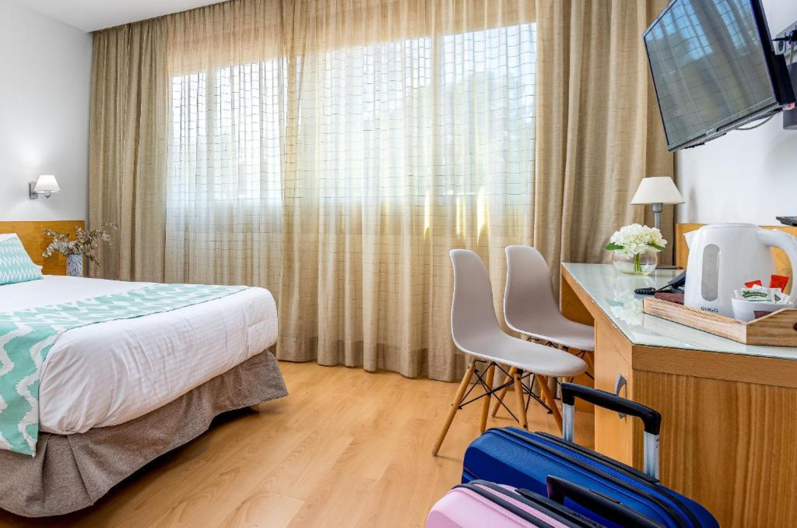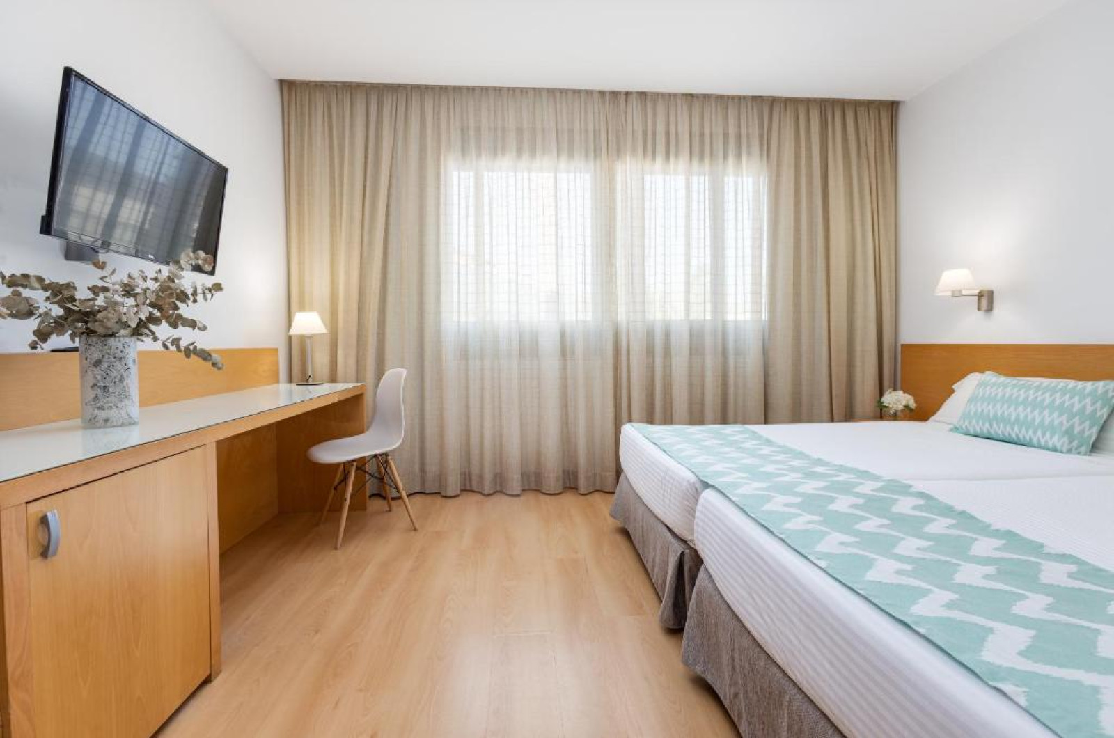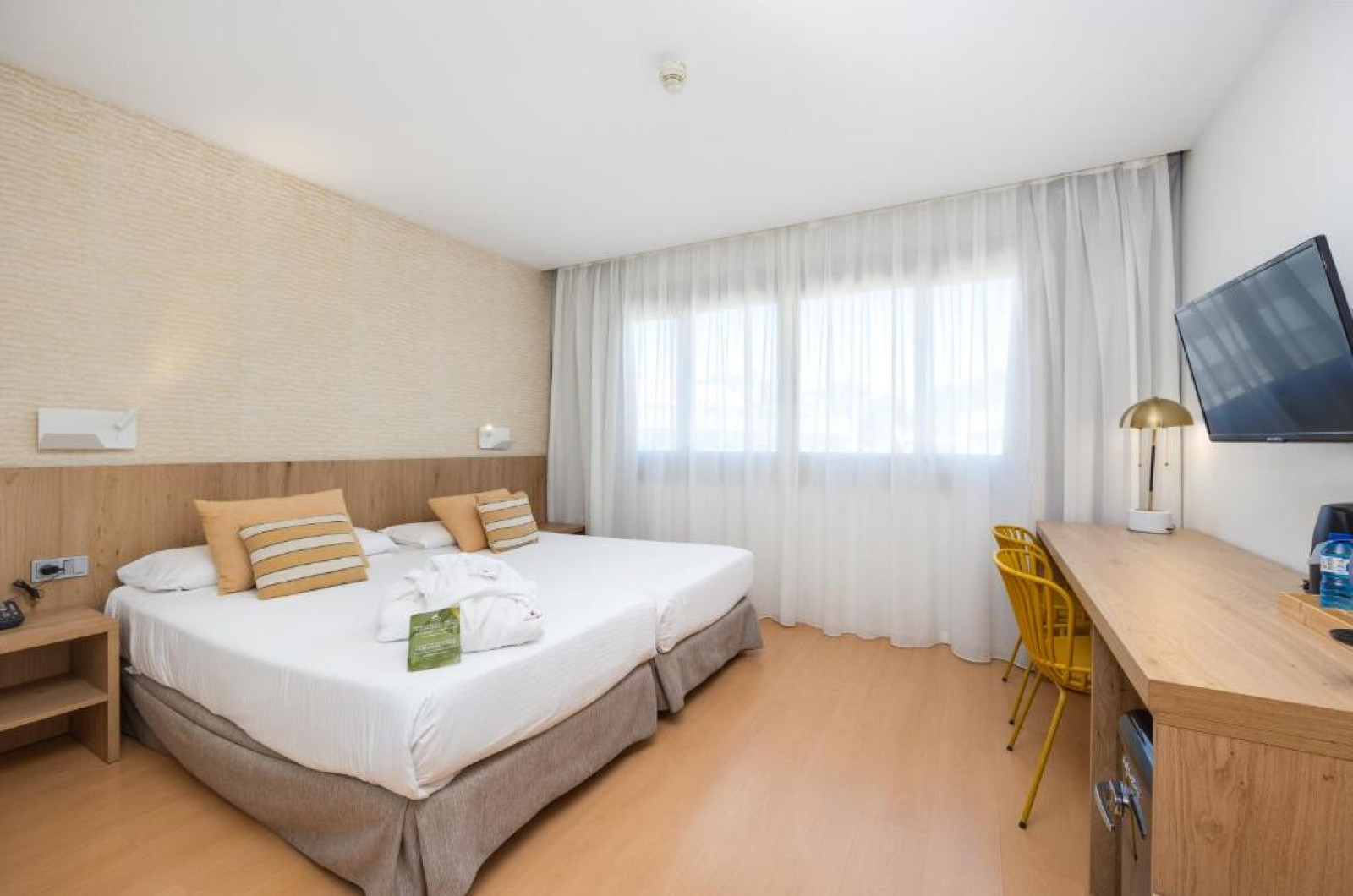 Toate camerele de la Daniya Alicante au aer condiționat, seif și minibar. Cu podea din lemn, acestea sunt decorate in tonuri calde, maro, iar băile private au uscător de păr.