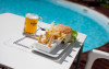 Restaurantul Daniya servește o combinație de preparate din bucătăria locală și internațională și este specializat in mancăruri din orez. Există, de asemenea, un café-bar și o terasă de vară. In iulie și august, proprietatea oferă divertisment pentru copii.