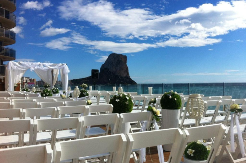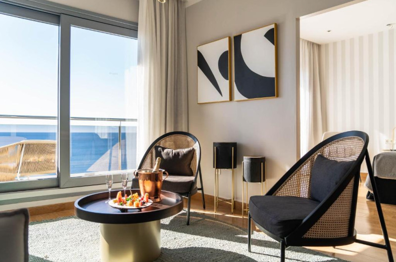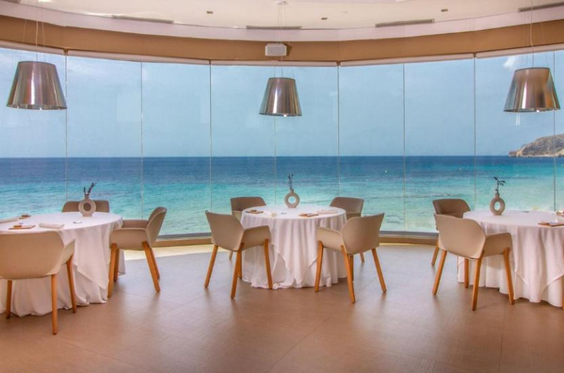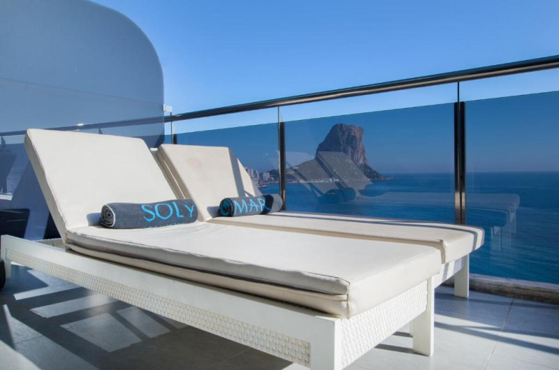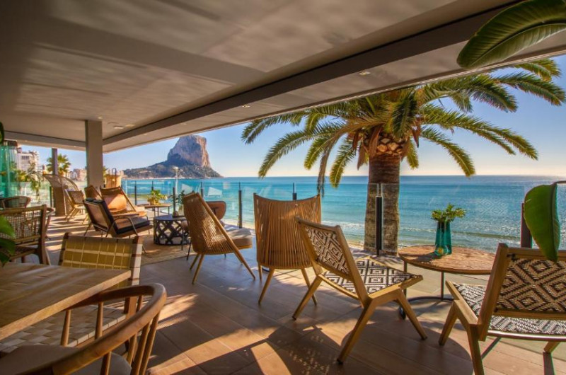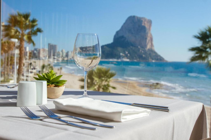 Acest hotel de design are un club pe plajă și o piscină infinită, cu vedere minunată la Marea Mediterană și la stanca Peñon de Ifach.