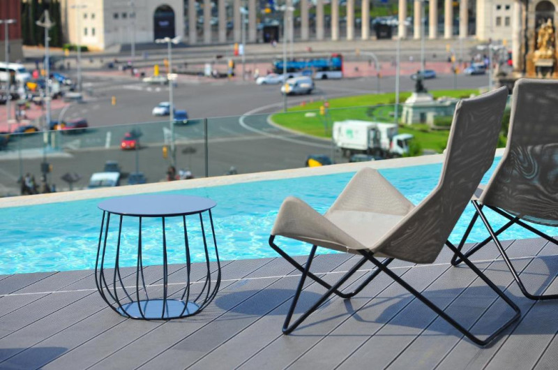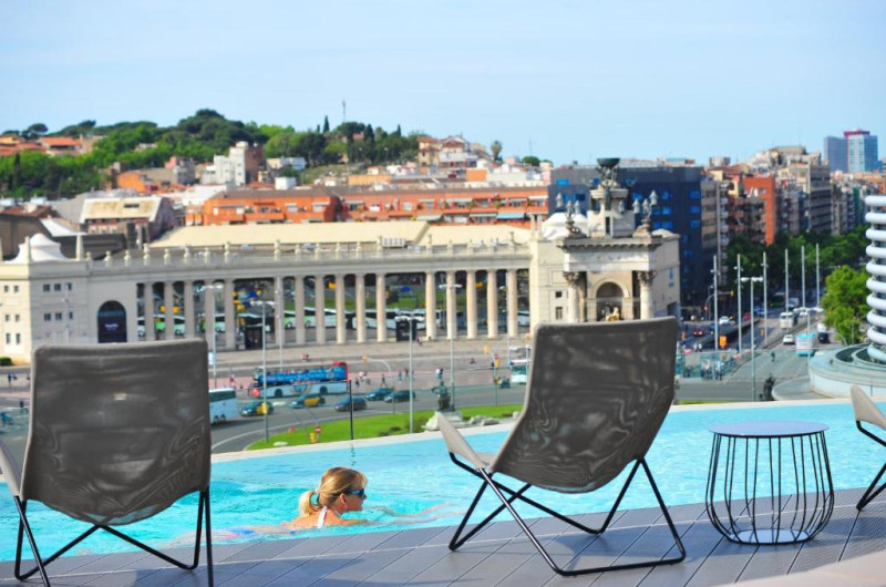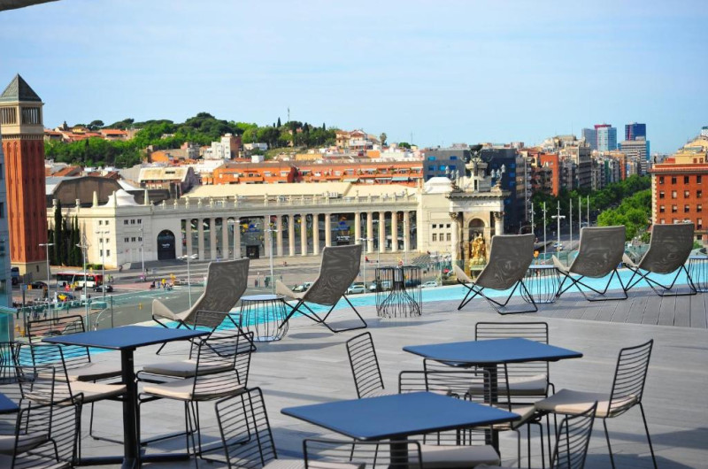 Acest hotel cu design deosebit este situat la doar 150 de metri de Plaça Espanya, vizavi de centrul comercial Las Arenas. Oferă o piscină la etajul 8 și o terasă cu vedere spectaculoasă la Montjuïc.