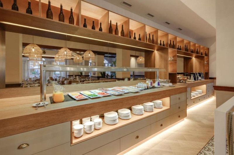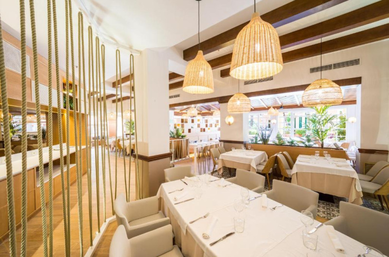 Restaurantul Port Regata servește opțiuni à la carte pentru micul dejun. Restaurantele Buffet del Mar, Buffet del Port și La Cascada oferă mic dejun mediteranean și bufet și preparate din bucătăria. Cal Pep servește băuturi și gustări langă piscină.