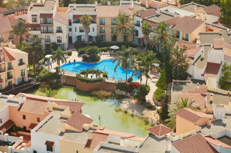 Hotelul este o replică a unui sat tipic mediteranean, cu grădini și un lac. Are acces direct la zona mediteraneană din PortAventura Park.