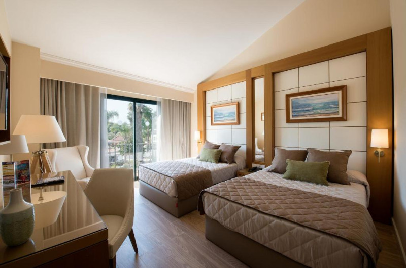 Toate camerele au decor luminos, TV prin satelit, minibar și vedere la grădinile hotelului sau la piscină.