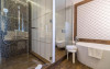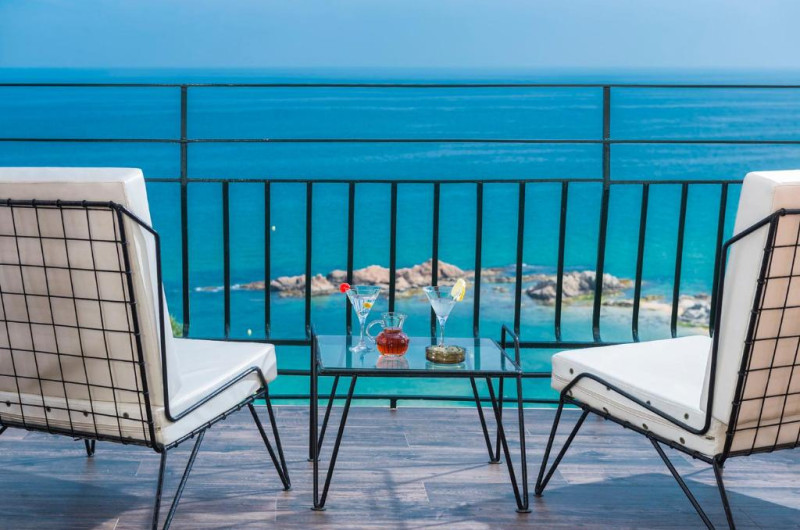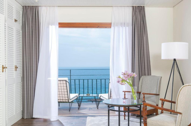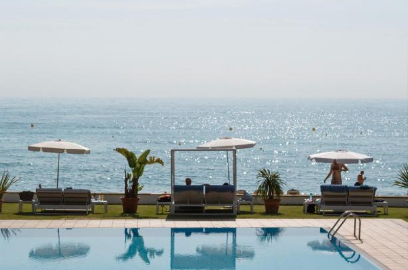 Hotelul cu vedere la mare se află la doar 200 de metri de plajă, unde se poate ajunge pe diferite alei delimitate de o varietate de pomi.
