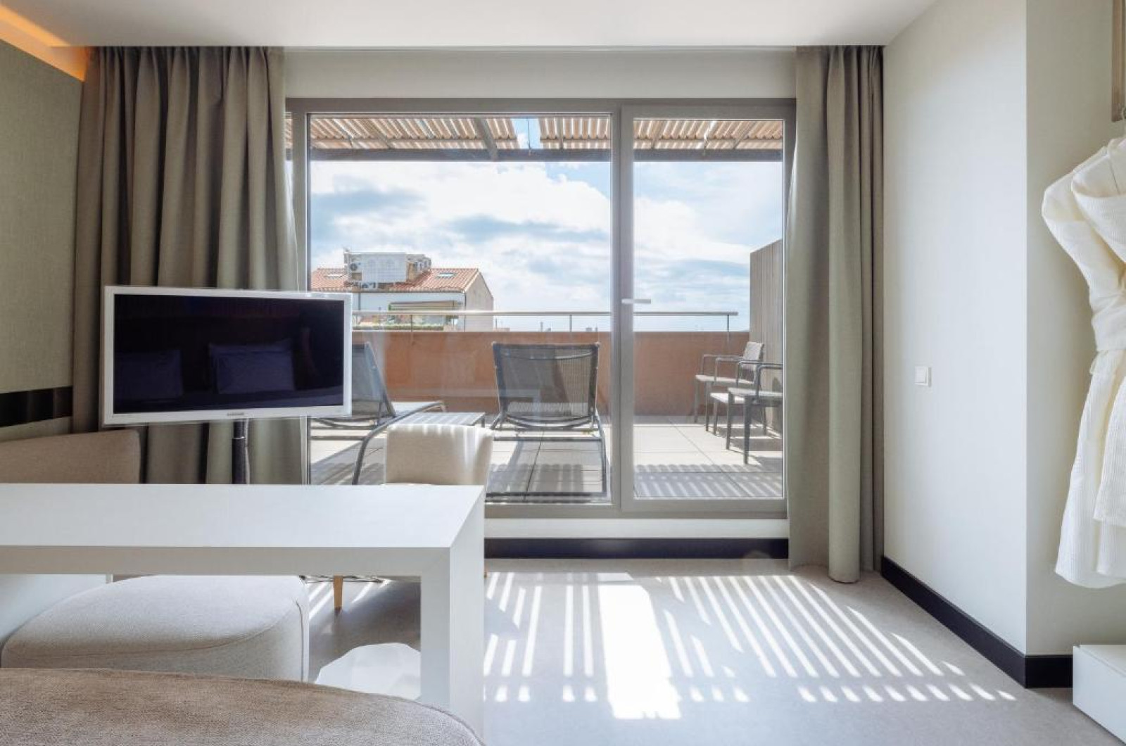 Camerele Hotelului Arcante au aer condiționat, decor alb elegant și diverse oglinzi. Oferă WiFi gratuit și televizoare LCD in dormitor și baie. Băile includ, de asemenea, halate de baie și papuci.