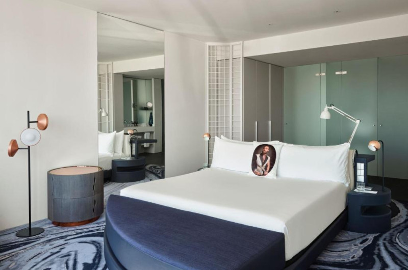 Camerele deosebite ale Hotelului W au design avangardist și vedere la Marea Mediterană sau oraș. Toate camerele sunt bune cu șezlong, TV cu ecran plat, iPod docking station și duș cu efect de ploaie.