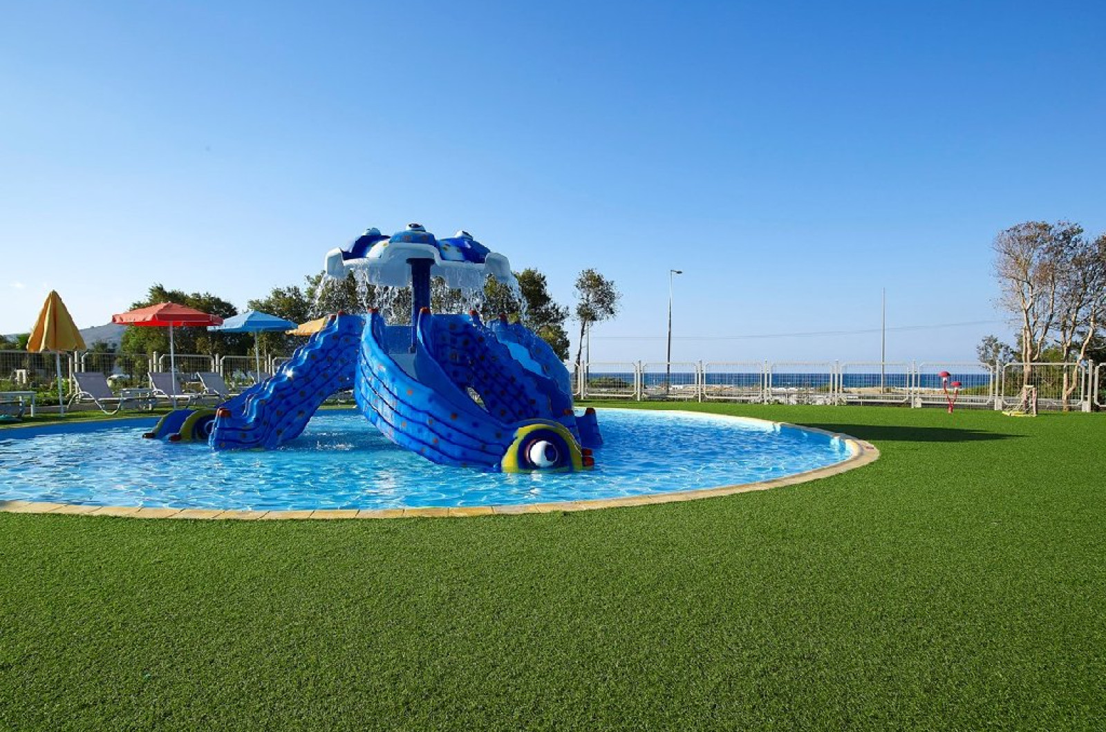 Hotelul; pune la dispozitia turistilor numeroase facilitati: plaja privata, piscina exterioara, piscina interioara, centru Spa, restaurant bufet, restaurant a la carte, bar, snack bar, rent-a-car, rent-a-bike, receptie 24h, camera pentru bagaje, Wi-Fi gratuit, parcare gratuita, aer conditionat, magazine, capela.