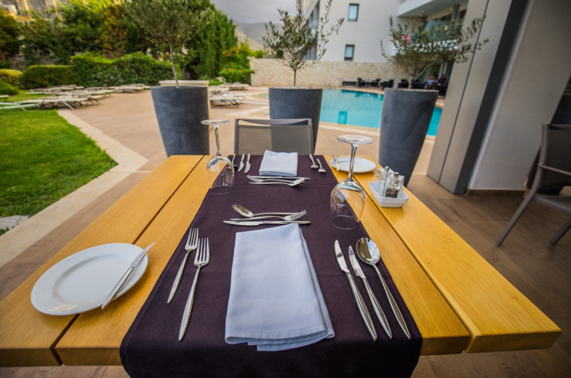 La Castello Boutique Resort Spa oaspeții au la dispoziție 2 restaurante unde pot savura mâncăruri delicioase, în stil bufet sau à la carte. Preparate din bucătăria grecească și internațională așteaptă să fie degustate în fiecare zi la micul dejun, prânz și cină. Masa poate fi servită atât în interior, cît si în aer liber, pe terasă, în funcție de vreme. Oaspeţii pot avea diverse băuturi răcoritoare sau alcoolice la bar. În cadrul proprietății există și un snack bar care servește băuturi și gustări.