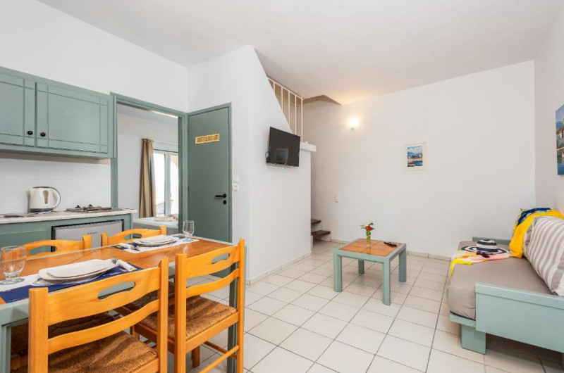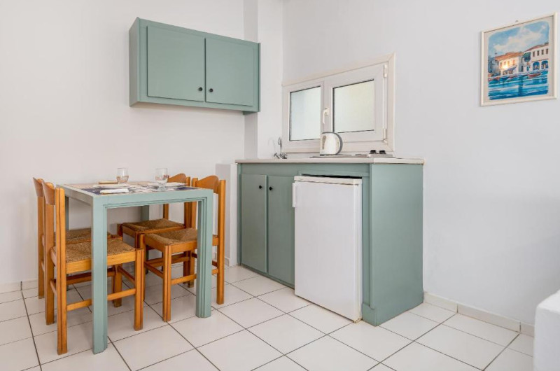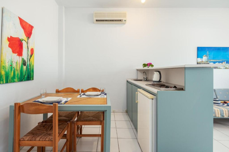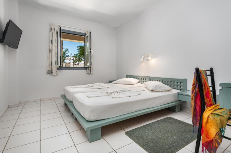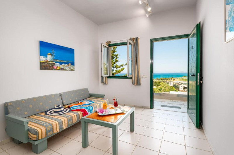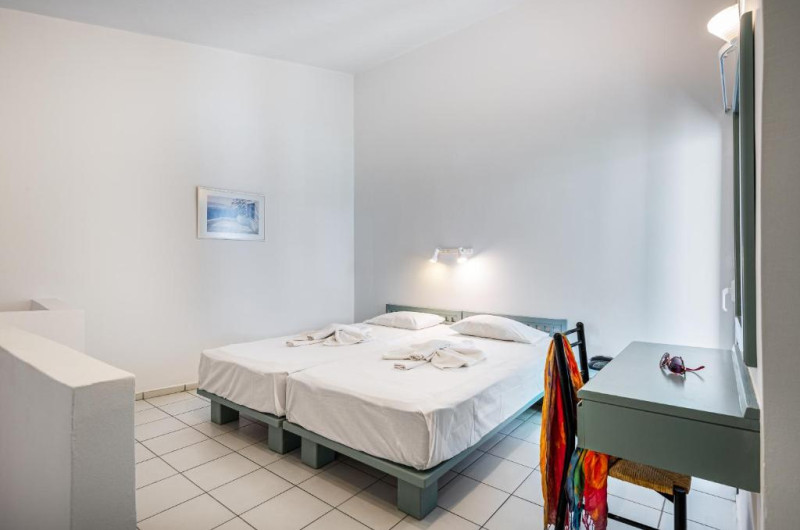 Camerele confortabile de la Aphea Village au pardoseală de gresie/ marmură, aer condiționat, Tv cu canale prin satelit și seif. Fiecare cameră dispune de cană-fierbător. În camere există baie cu cadă sau duș ce are în dotare foehn și articole de toaletă gratuite. Camerele au balcon cu vedere la mare sau la grădină. Oaspeții au acces gratuit la serviciul Wi-fi în camere. Fiecare unitate de cazare include o chicinetă utilată cu frigider, plită de gătit și ustensile de bucătărie. De asemenea, este disponibilă o zonă de luat masa. Proprietatea oferă camere pentru familie cu o suprafață mai mare și un număr mai mare de paturi față de cele standard.
