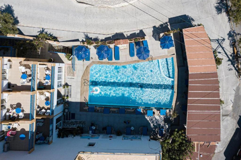 Este format din 5 clădiri, 2 dintre ele fiind situate in fața plajei, iar celelalte sunt chiar deasupra, cu trepte separate de drumul satului. Acesta oferă o varietate de unități de cazare confortabile pentru a se potrivi nevoilor oaspeților, la doar 100 m de populara plajă cu nisip.
