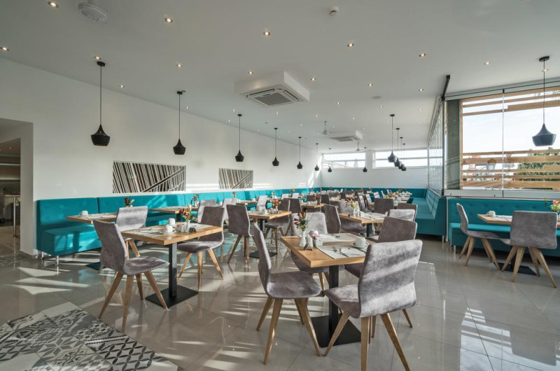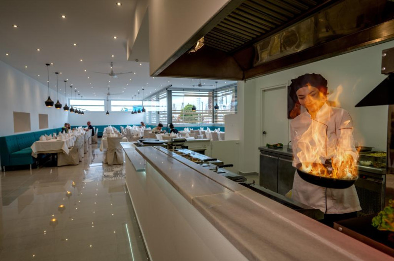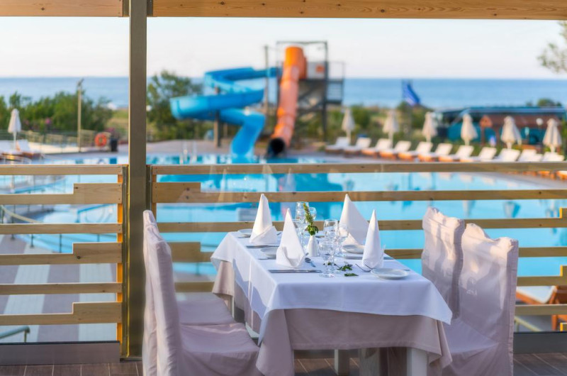 La Georgioupolis Resort Aquapark & Spa oaspeții au la dispoziție 3 restaurante unde pot savura mâncăruri delicioase, în stil bufet sau à la carte. Bucătăria locală, internațională, mediteraneeană și italiană propun mâncăruri pentru gusturi diverse. Pizza este de asemenea o opțiune culinară pentru cei gurmanzi. Masa poate fi servită atât în interior, cît si în aer liber, pe terasă, în funcție de vreme. 3 baruri, dintre care unul la piscină, sunt disponibile cu o ofertă variată de băuturi răcoritoare și alcoolice. În cadrul proprietății există și o cafenea ideală pentru o gustare rapidă. Pentru cei cu anumite nevoi de nutriție, Georgioupolis Resort Aquapark & Spa oferă meniuri pentru diete speciale.