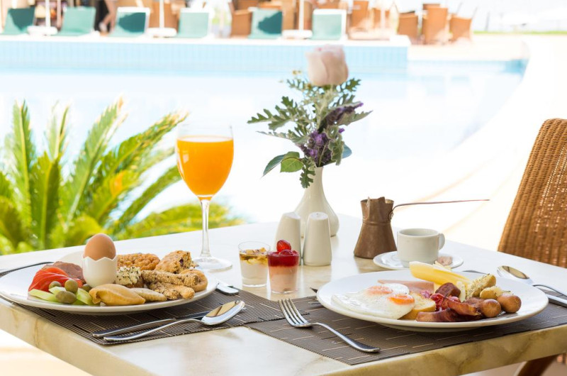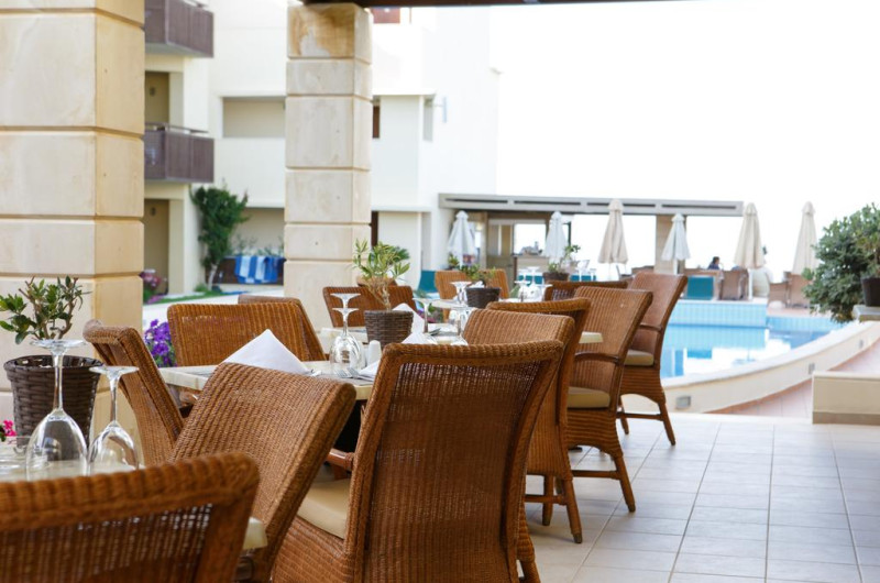 La Santa Marina Plaza oaspeții au la dispoziție 2 restaurante unde pot savura mâncăruri delicioase, în stil bufet sau à la carte. Preparate din bucătăria grecească așteaptă să fie degustate în fiecare zi. Masa poate fi servită atât în interior, cît si în aer liber, pe terasă, în funcție de vreme. 2 baruri, dintre care unul la piscină, sunt disponibile cu o ofertă variată de băuturi răcoritoare și alcoolice. Pentru cei cu anumite nevoi de nutriție, Santa Marina Plaza oferă meniuri pentru diete speciale.