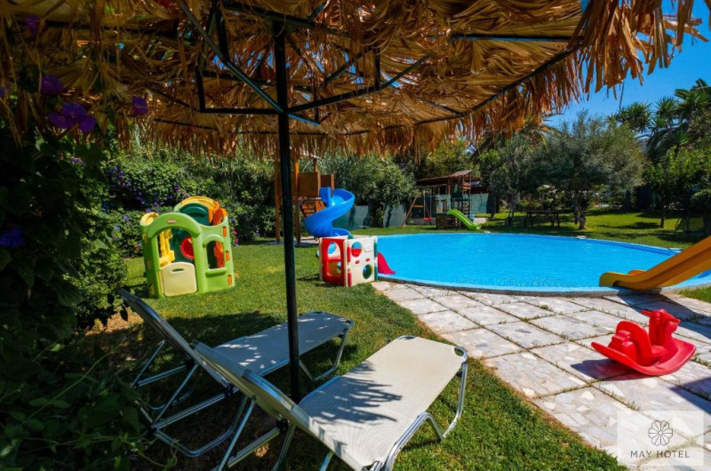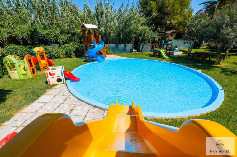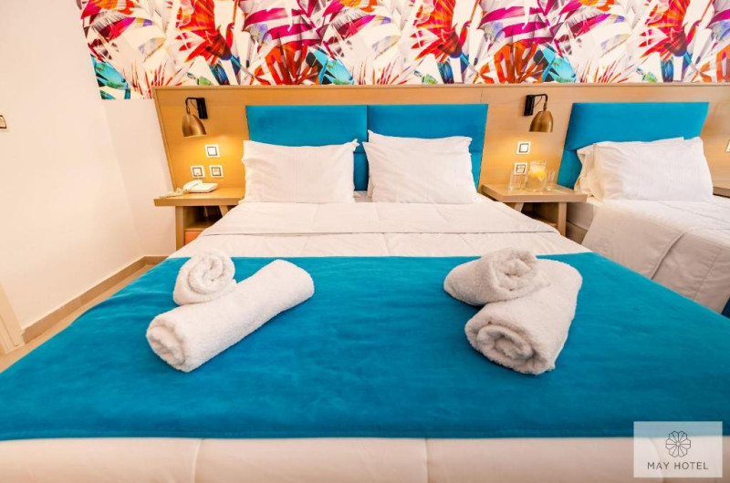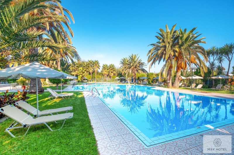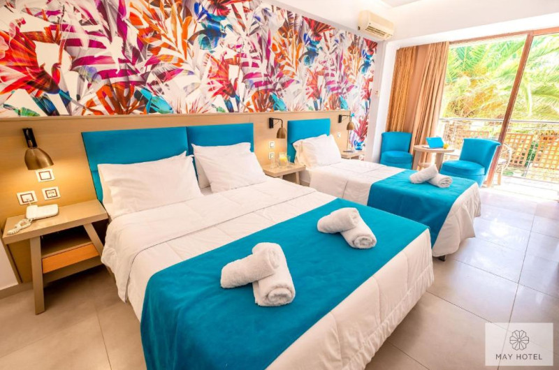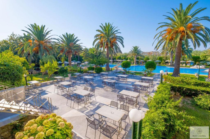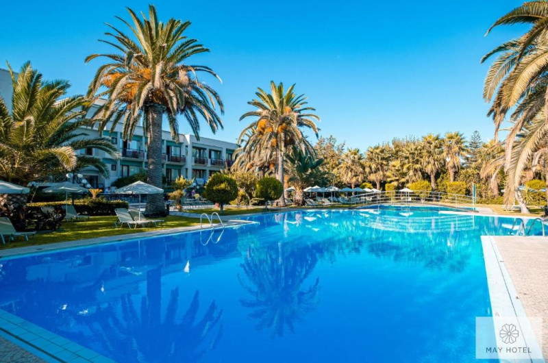 Hotelul May Beach se află la 200 de metri de plaja Missiria si la 4 km de Rethymnon. Acesta oferă mic dejun si Wi-Fi gratuit. Camerele au balcon mobilat, cu vedere la grădina de palmieri si la piscină.