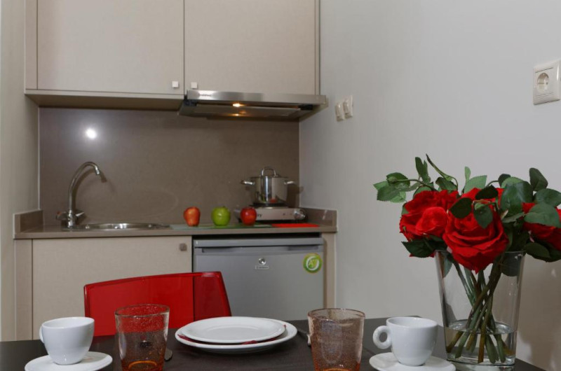 Dimitra Hotel & Apartments servește zilnic un mic dejun tip bufet în zona de luat masa. La proprietate există un snack-bar care oferă cafea, băuturi și gustări. Masa poate fi servită atât în interior, cît si în aer liber, pe terasă, în funcție de vreme.