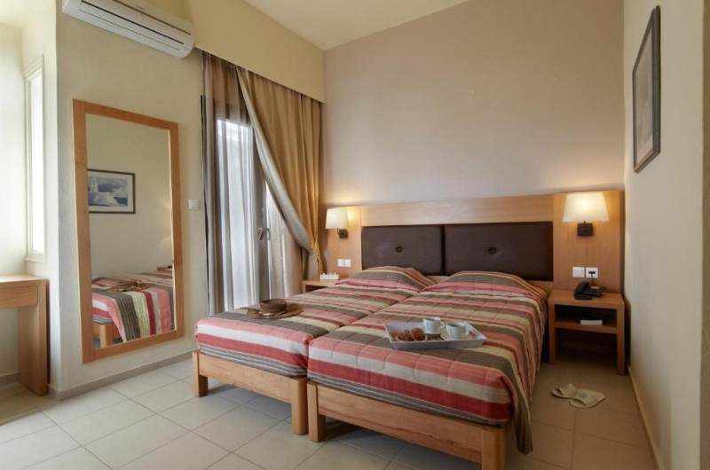 Fiecare cameră dispune de mașină pentru preparare cafea sau ceai și fierbător În camere există baie cu cadă sau duș ce are în dotare foehn și articole de toaletă gratuite. Unele camere au balcon cu vedere la grădină sau la piscină. Camerele confortabile de la Dimitra Hotel & Apartments au pardoseală de gresie/ marmură, aer condiționat, Tv cu canale prin satelit și seif. Oaspeții au acces gratuit la serviciul Wi-fi în camere. Curățenia in cameră se face zilnic. Fiecare unitate de cazare are frigider. Proprietatea oferă camere pentru familie cu o suprafață mai mare și un număr mai mare de paturi față de cele standard. Se pot rezerva de asemenea camere pentru nefumători.